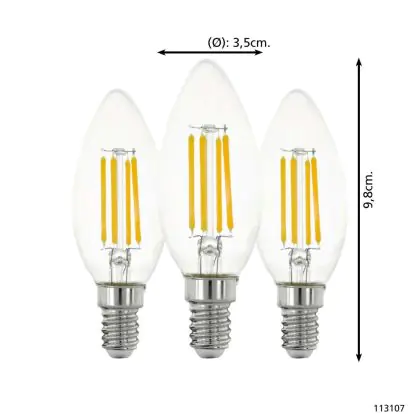 Descrizione Confezione Multipack 3x Eglo LED Candela E14 Filamento Chiara 21W 806lm - 827 Bianco Molto Caldo | Sostitutiva 60W
