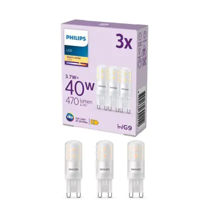 Confezione Multipack 3x Philips LED Capsule G9 Ghiaccio 3.7W 470lm - 827 Bianco Molto Caldo