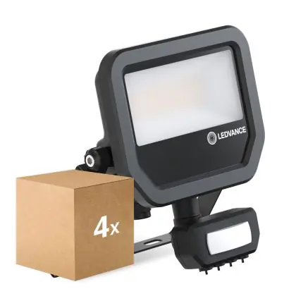 Confezione Multipack 4x Ledvance Proiettore LED Aluminium Nero 17W 2400lm 100D - 840 Bianco Freddo | IP65 - Sensore di Movimento e Luce - Simmetrico