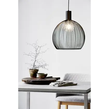 La sospensione Aver di Nordlux è composta da aste metalliche che creano una bella luce grazie a un gioco di ombre. La sospensione ha un design aperto, ideale per installare una lampadina a filamento visibile. Aggiunge un tocco di design alla sospensione! Si prega di notare che è necessario acquistare la lampadina a filamento, che non è inclusa.