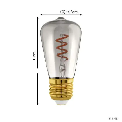Descrizione Eglo LED Edison E27 Filamento Smokey 4W 100lm - 820 Bianco Molto Caldo | Dimmerabile - Sostitutiva 15W