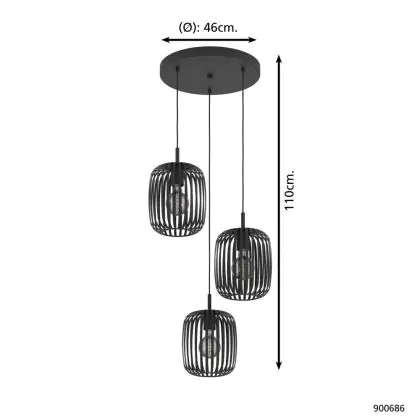 Eglo Luce Pendente Romazzina Acciaio Nero | Adatto per 3x E27