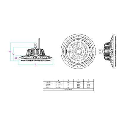 Descrizione Highbay LED 200W 22000lm 90D - 840 Bianco Freddo | IP65