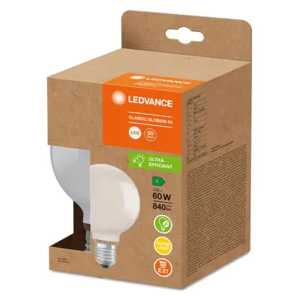 La Ledvance Classic LED E27 Globe Ghiaccio 4W 840lm - 830 - Luce Calda | Sostitutiva 60W è la perfetta sostituzione per la tua lampada convenzionale 60W con attacco E27 grazie alla sua tecnologia LED. Passare a LED ti offrirà tanti vantaggi!