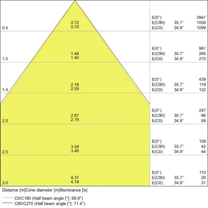 L'apertura del fascio luminoso indica l'angolo del fascio di luce proveniente da una lampada o lampadina. Si misura in gradi (D) e più piccolo è l'angolo, più piccola è l'apertura del fascio di luce.