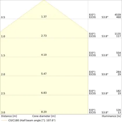 L'apertura del fascio luminoso indica l'angolo del fascio di luce proveniente da una lampada o lampadina. Si misura in gradi (D) e più piccolo è l'angolo, più piccola è l'apertura del fascio di luce.