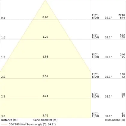 L'apertura del fascio luminoso indica l'angolo del fascio di luce proveniente da una lampada o lampadina. Si misura in gradi (D) e più piccolo è l'angolo, più piccola è l'apertura del fascio di luce.
