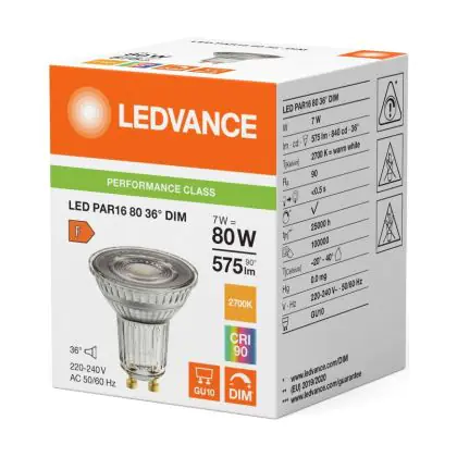 Descrizione Ledvance LED PAR16 GU10 Riflettore 7W 575lm 36D - 927 Bianco Molto Caldo | Miglior Resa Cromatica - Dimmerabile - Sostitutiva 80W
