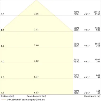 L'apertura del fascio luminoso indica l'angolo del fascio di luce proveniente da una lampada o lampadina. Si misura in gradi (D) e più piccolo è l'angolo, più piccola è l'apertura del fascio di luce.