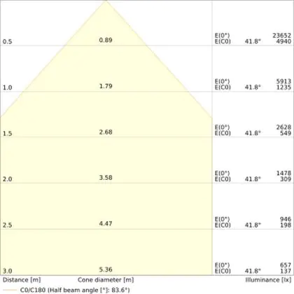 L'apertura del fascio luminoso indica l'angolo del fascio di luce proveniente da una lampada o lampadina. Si misura in gradi (D) e più piccolo è l'angolo, più piccola è l'apertura del fascio di luce.