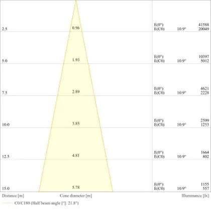 L'apertura del fascio luminoso indica l'angolo del fascio di luce proveniente da una lampada o lampadina. Si misura in gradi (D) e più piccolo è l'angolo, più piccola è l'apertura del fascio di luce.