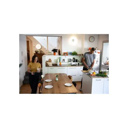 Con gli apparecchi dimmerabili si può rregolare l'intensità luminosa. Quando si abbassa la potenza della luce si consuma meno energia elettrica e si risparmia quindi sui costi energetici. Le lampade dimmerabili possono anche essere usate per creare un'atmosfera molto accogliente. Tieni presente che hai bisogno di un dimmer LED per regolare apparecchi LED.