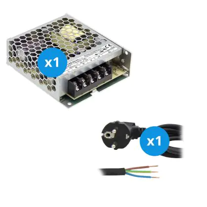 Mean Well Driver | LRS5024 | IP20 | 24V | 50W + Cavo Dell'Alimentazione 2m con Terra