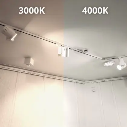 Il modo in cui un faretto LED a binario illumina i prodotti e/o gli oggetti dipende dalla temperatura di colore della luce e dalla resa cromatica (CRI), che in questo caso sono 3000K - Luce Calda e 90-99 - Perfetta resa cromatica Ra.