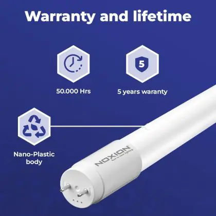 Il Noxion Tubo LED T8 Avant (EM/Mains) Standard Output 19W 2300lm - 840 Bianco Freddo | 150cm - Sostitutiva 58W è l’alternativa perfetta per il tubo fluorescente standard 58W nelle plafoniere con un reattore. Con questo tubo LED hai una garanzia di una vita media utile molto lunga e 5 anni Lampadadiretta.it di totale garanzia. .