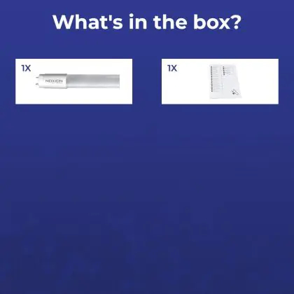 Il diametro è uguale a un normale tubo fluorescente. Il colore della luce è 3000K - Luce Calda, anche conosciuto come 830 Luce Calda. Questo fa si che questo tubo sia perfetto per illuminare sale ed ambienti lavorativi, garages e fabriche.