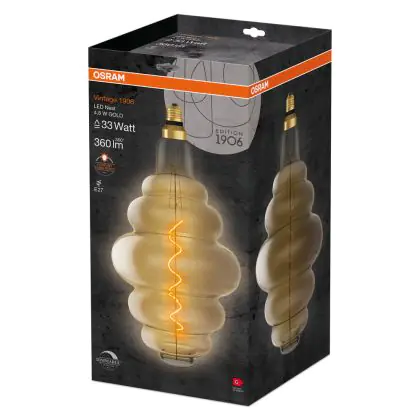 La Osram Vintage 1906 LED E27 Special Filament Gold 4.8W 360lm - 822 Extra Warm White | Dimmable è la perfetta sostituzione per la tua lampada convenzionale 33W con attacco E27 grazie alla sua tecnologia LED. Passare a LED ti offrirà tanti vantaggi!