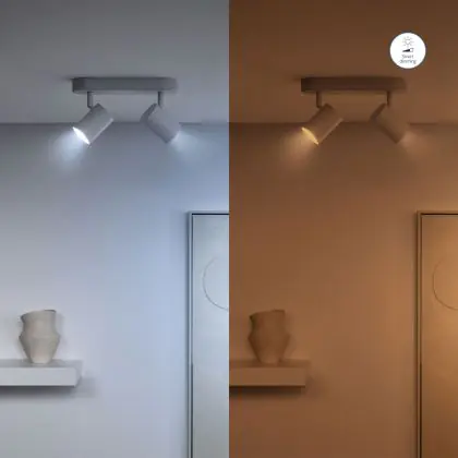Con gli apparecchi dimmerabili si può rregolare l'intensità luminosa. Quando si abbassa la potenza della luce si consuma meno energia elettrica e si risparmia quindi sui costi energetici. Le lampade dimmerabili possono anche essere usate per creare un'atmosfera molto accogliente. Tieni presente che hai bisogno di un dimmer LED per regolare apparecchi LED.