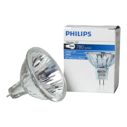La Philips Brilliantline Alu 50W GU5.3 12V MR16 36D é una lampadina alogena moto utilizzata all'interno di esercizi commerciali, ma anche di abitazioni provate. L'angolo del fascio luminoso di 36 gradi la rende particolarmente indicata per applicazioni di illuminazione generale dell'ambiente. La base GU5.3 permette la compatibilità con moltissimi modelli LED cosí da incentivarne la sostituzione.