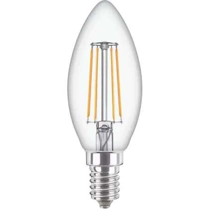 La lampada Philips Corepro LED Candela E14 Filamento Chiara 4.3W 470lm - 827 Bianco Molto Caldo | Sostitutiva 40W è il sostituto perfetto per le tue vecchie lampade 40W con attacco a vite piccolo E14 grazie alla sua tecnologia LED. Passare a LED ti offrirà molti vantaggi!
