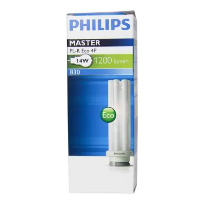 Le Philips PL-R Eco 14W 840 4P (MASTER) sono lampade fluorescenti compatte più efficienti delle classiche lampade a basso consumo. Queste lampade sono un'ottima scelta in termini di rispetto dell'ambiente anche perché hanno una lunga vita di ben 24.000 ore e presentano un limitato contenuto di mercurio. Esse inoltre assicurano performance ottimali di illuminazione con stabilità del flusso luminoso. L'attacco di queste lampade é del tipo GR14q-1 ed é dotato di 4 pin (perni). La potenza di tali lampade é di 14W.