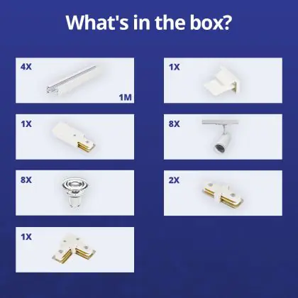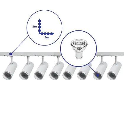 | Nome del fabbricante | Complete L shaped 1-Phase Track Set White incl. 8x Spot fixture + GU10 2700K 3W Dim – 2 x 2 meters i | |