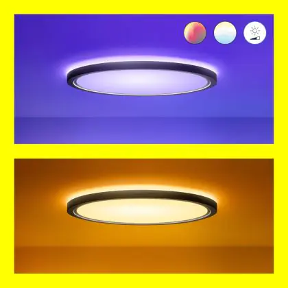 Una plafoniera LED di WiZ è un ottimo acquisto perché grazie alla tecnologia LED integrata consuma solo 22 watt, cosa che comporta un bel risparmio energetico. Inoltre, questo apparecchio di illuminazione ha una durata di circa 20000 ore e, grazie alla sua elevata emissione luminosa di 2600 lumen, distribuisce la luce in modo uniforme in una stanza.